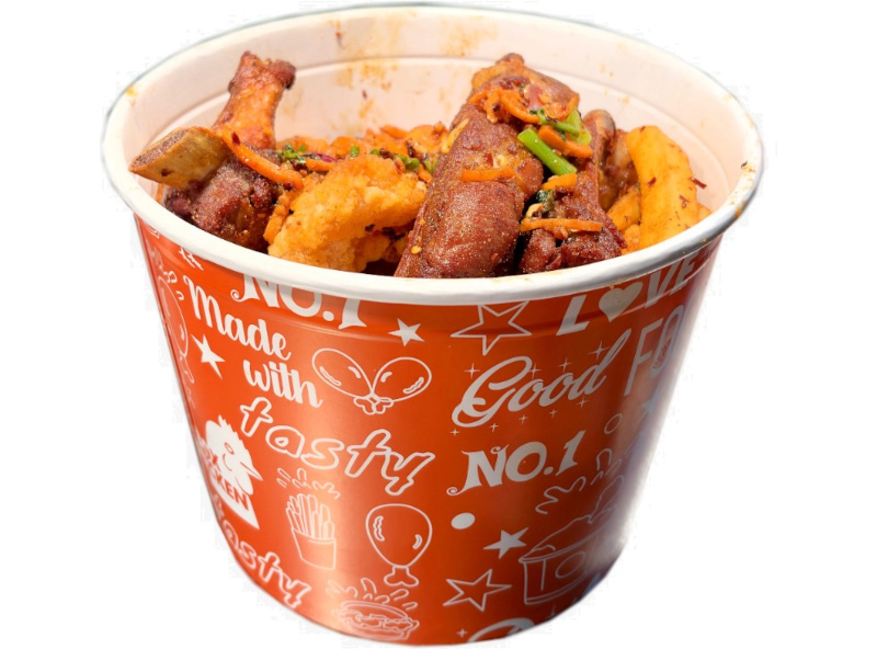 | Crispy Chicken, Chips, Chicken Wings and Pork Ribs tossed with salt and pepper chilli. Allergens - Eggs, Milk, Mollusc, Soya, | ||