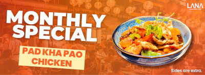 Special Offer Phad Kha Pao Chicken With fresh garlic, chilli, onion, mushroom and sweet basil.